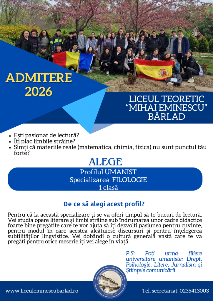Numărul de locuri rezervat școlii noastre este limitat la 20 de elevi care provin din clasele 11, 12.