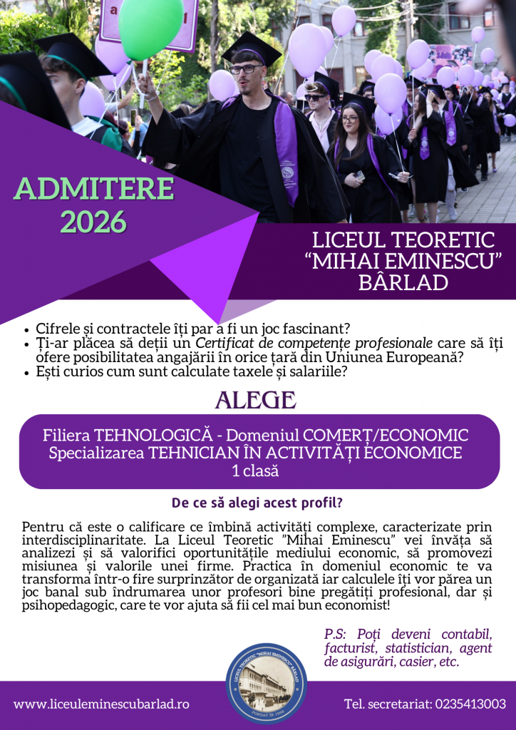Școala noastră este unul dintre cei 7 parteneri selectați la nivel național, să implementeze, în perioada următoare, proiectul„Acces la educație, succes în viitor! EduACCES“-Primul student în familie, cofinanțat de Uniunea Europeană și coordonat de UAIC, Iași care urmărește sprijinirea unui număr de 352 de tineri, din care 162 de elevi și absolvenți de liceu din promoțiile anterioare care nu au promovat examenul de bacalaureat și 190 de studenți, în special cei proveniți din familii cu nivel educațional scăzut al părinților.