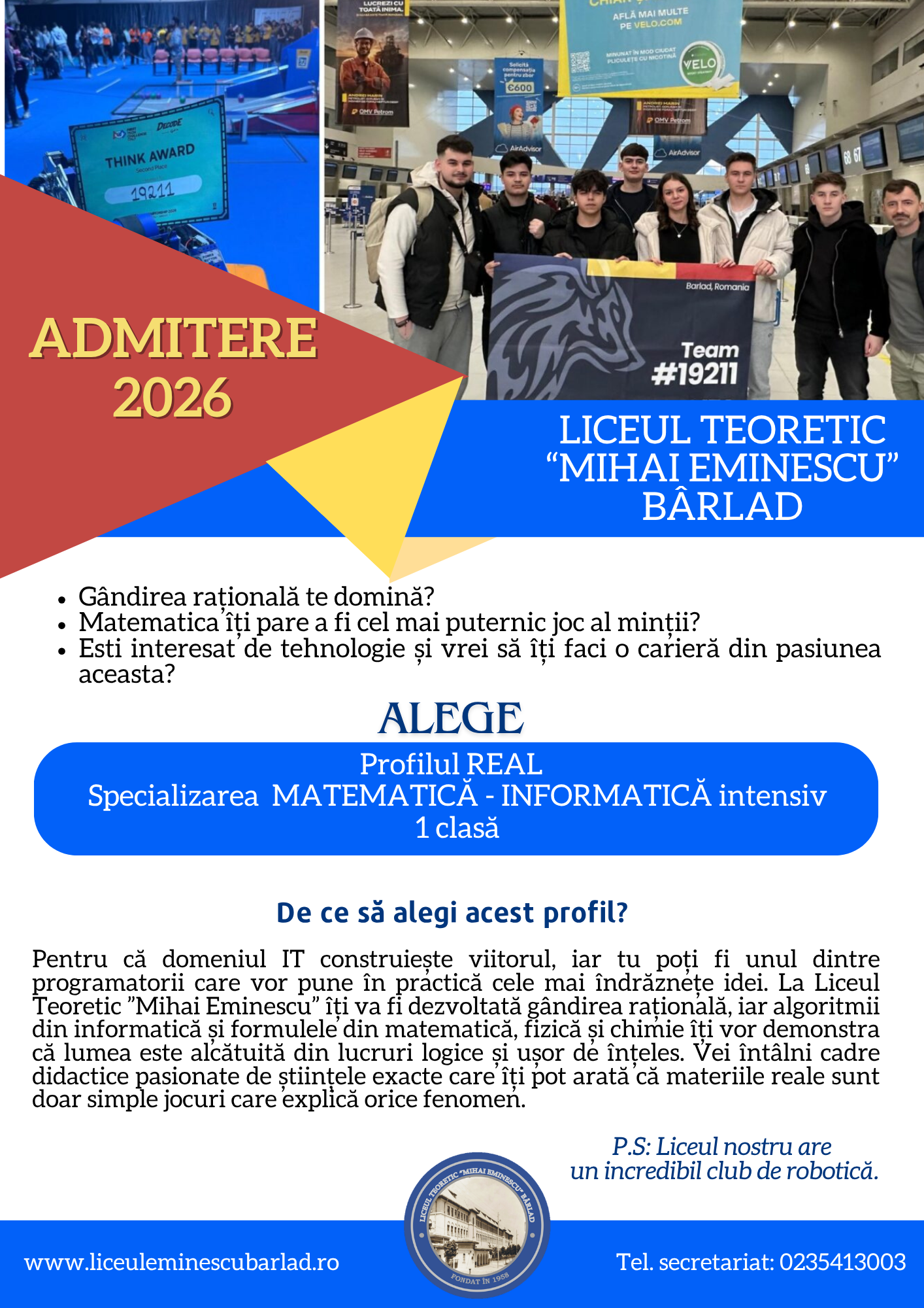 Numărul de locuri rezervat școlii noastre este limitat la 20 de elevi care provin din clasele 11, 12.